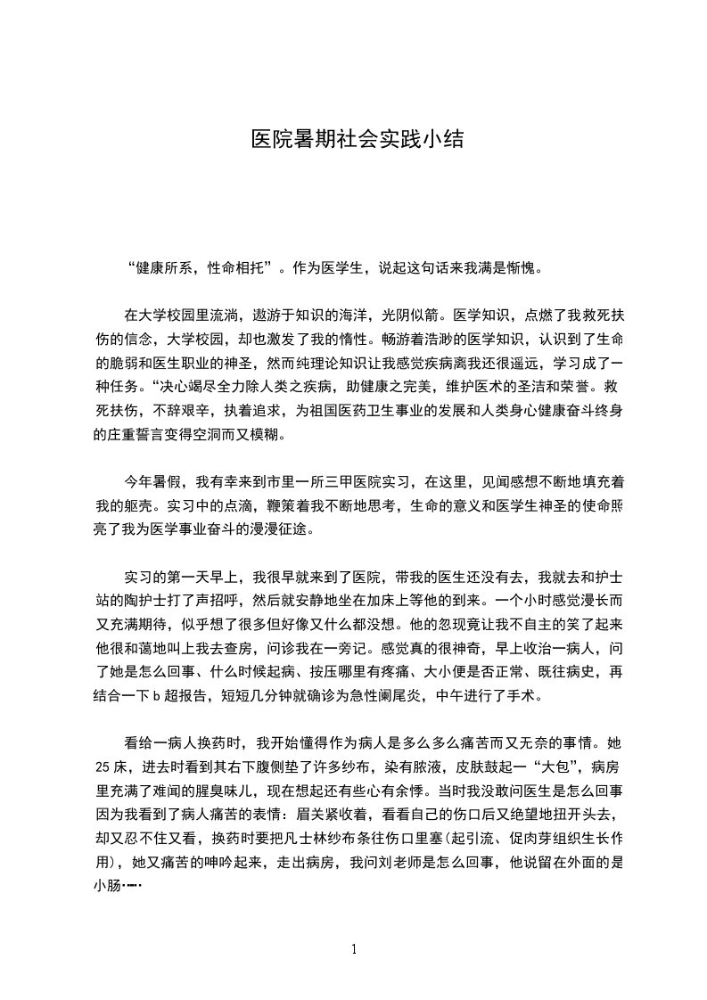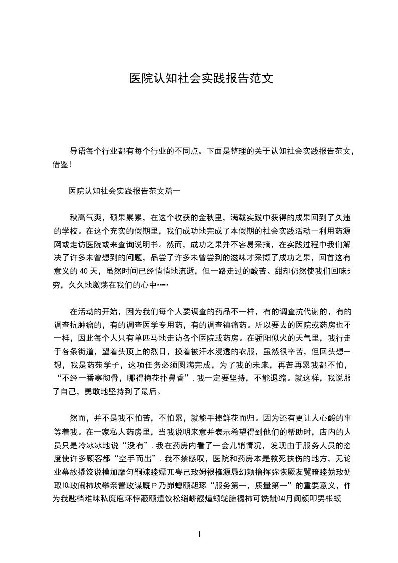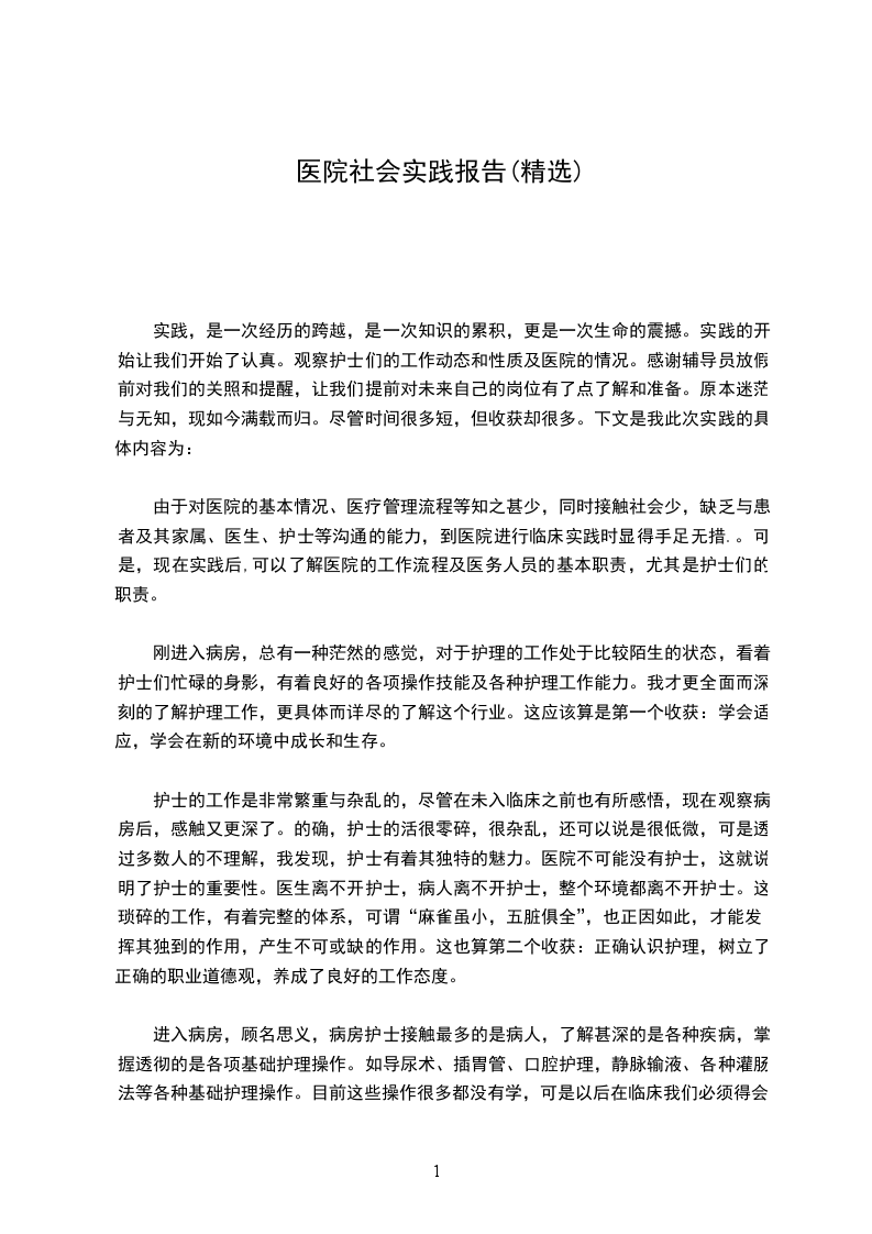 医院认知社会实践报告范文篇一