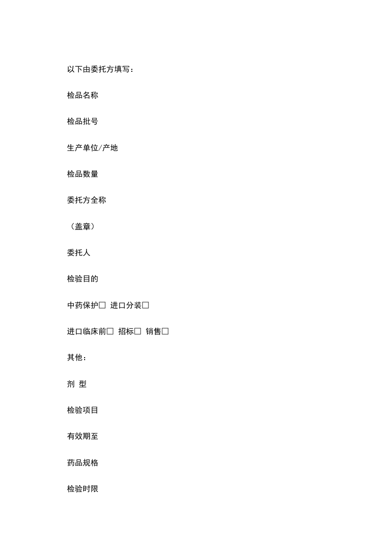 说明:1.请仔细阅读《药品检验所委托检验须知》,再填写本委托书;