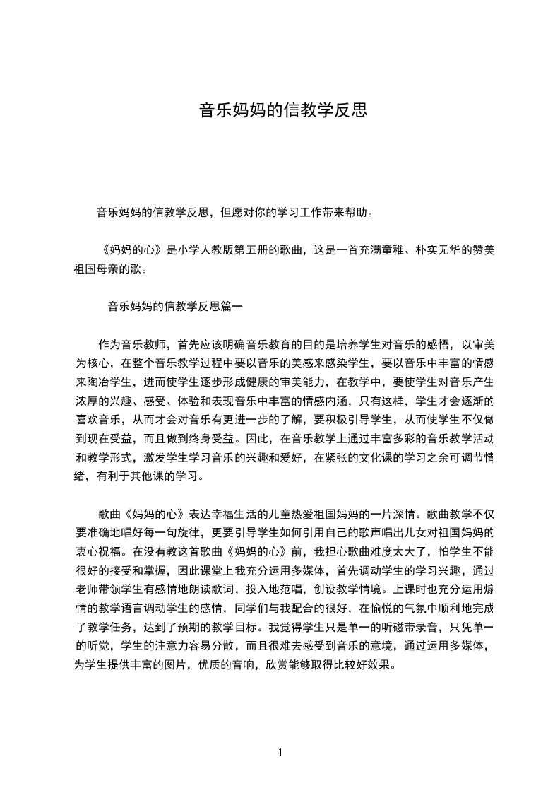 音乐妈妈的信教学反思,但愿对你的学习工作带来帮助。