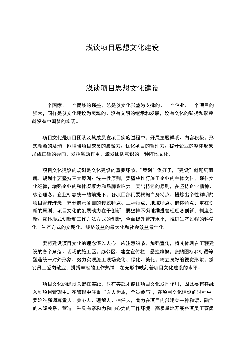 浅谈项目思想文化建设