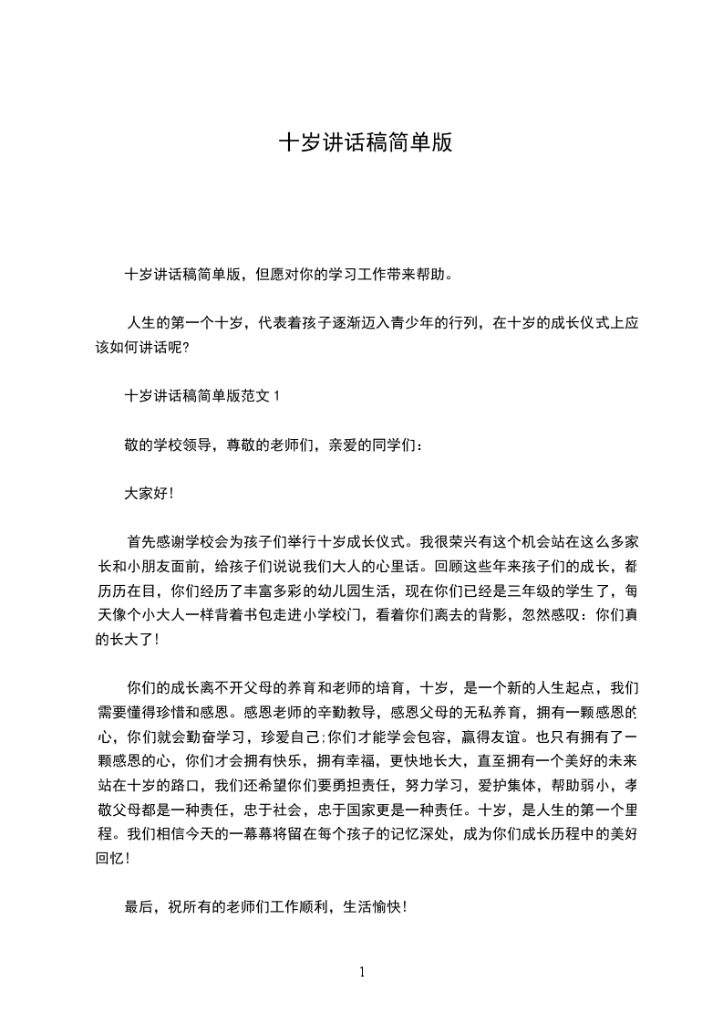 十岁讲话稿简单版,但愿对你的学习工作带来帮助。
