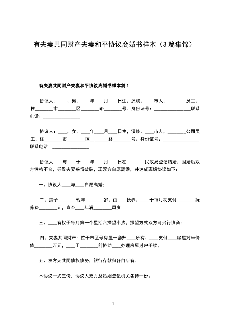 2024夫妻和平协议离婚书怎么写篇3