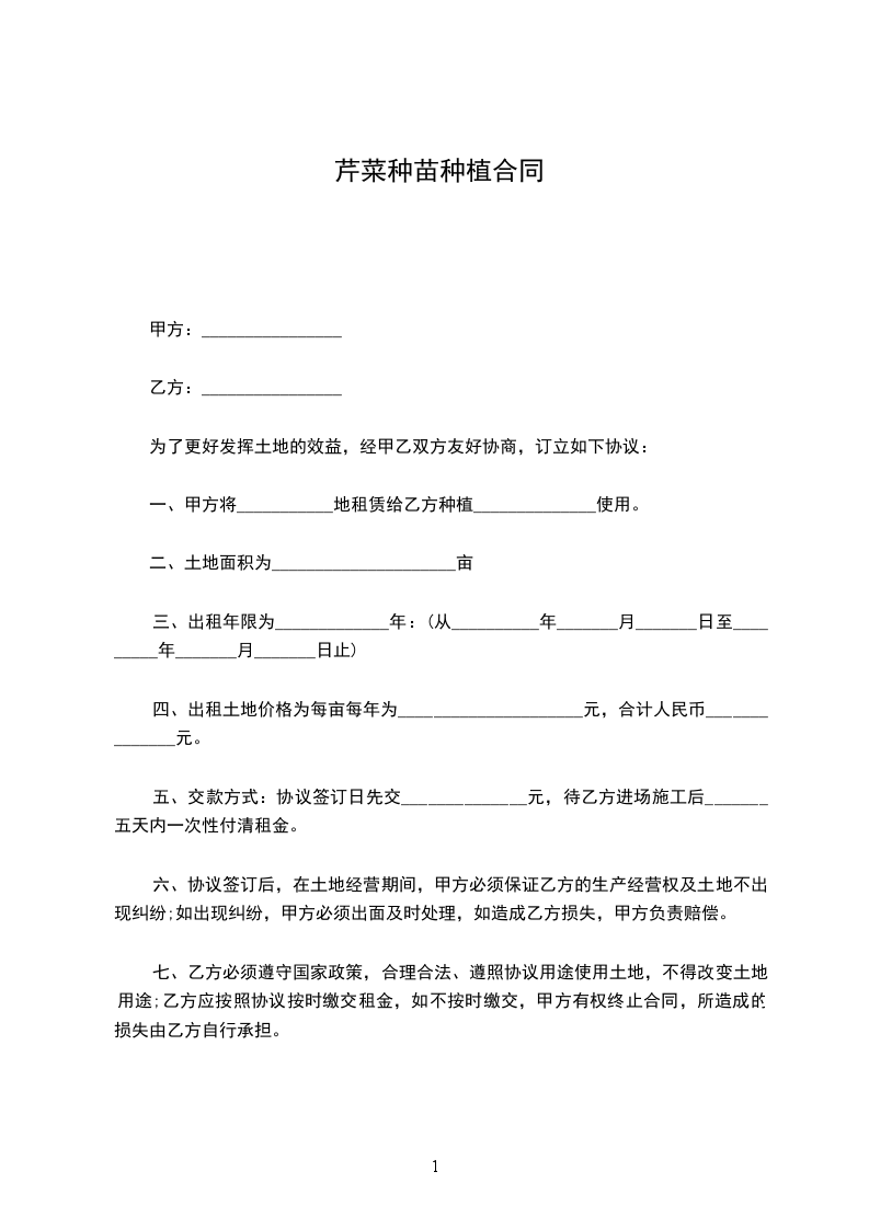 ②乙方因自身原因需要终止合同,也需要提前一个月向乙方说明,甲方除扣除乙方第三条订金外,如造成甲方不能完成同时期种植,乙方应该根据实际,赔付甲方损失。