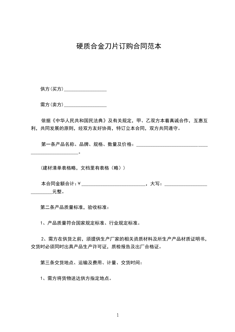 第一条产品名称、品牌、规格、数量及价格:__________________________________________________。