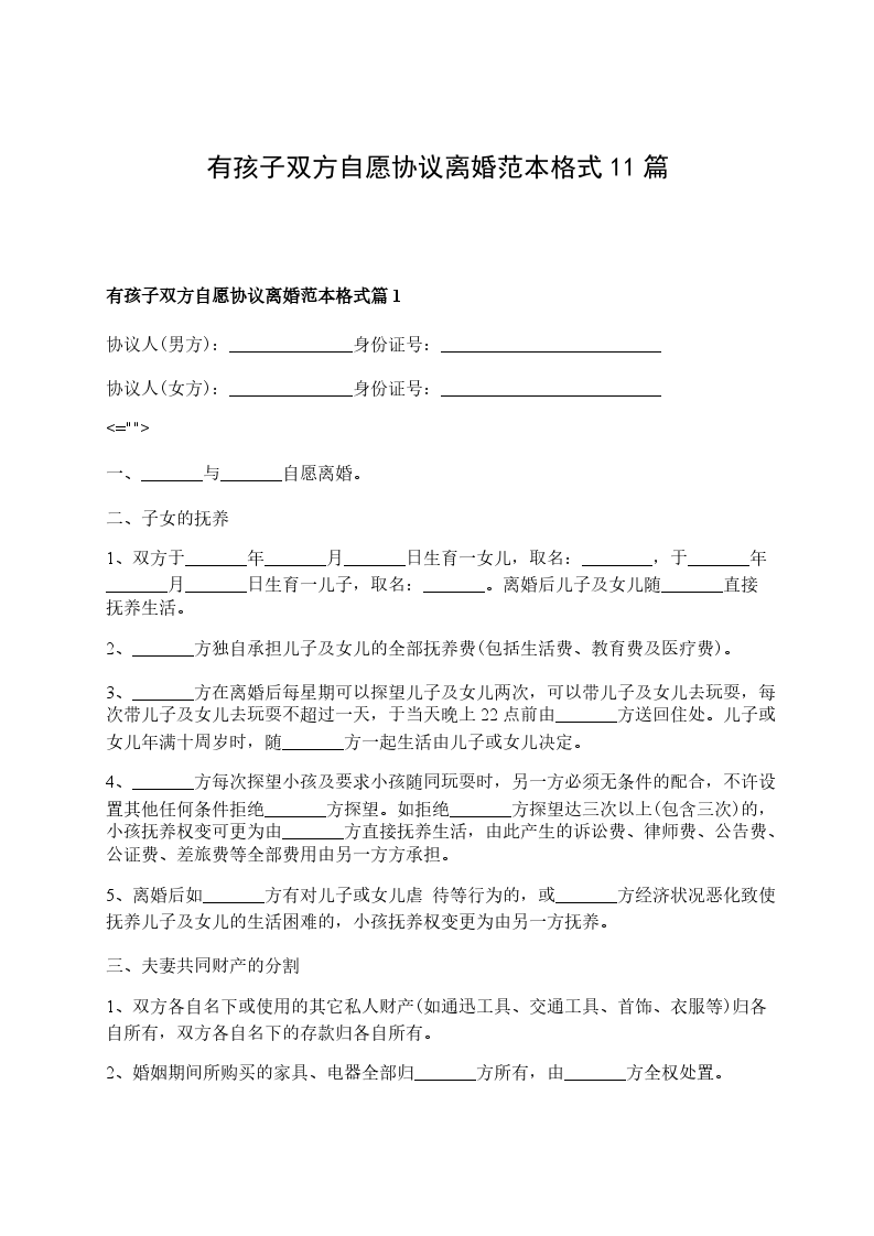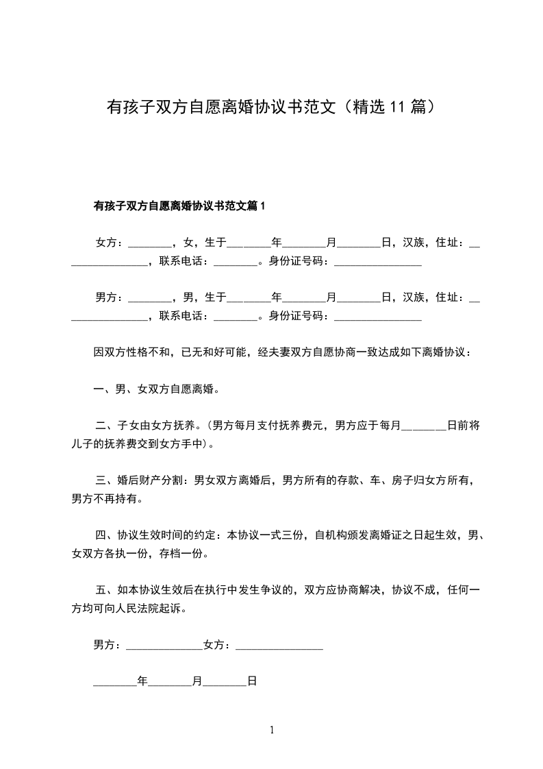 有孩子双方自愿协议离婚书参考样式篇11