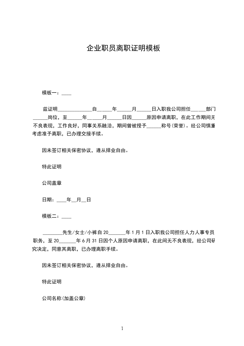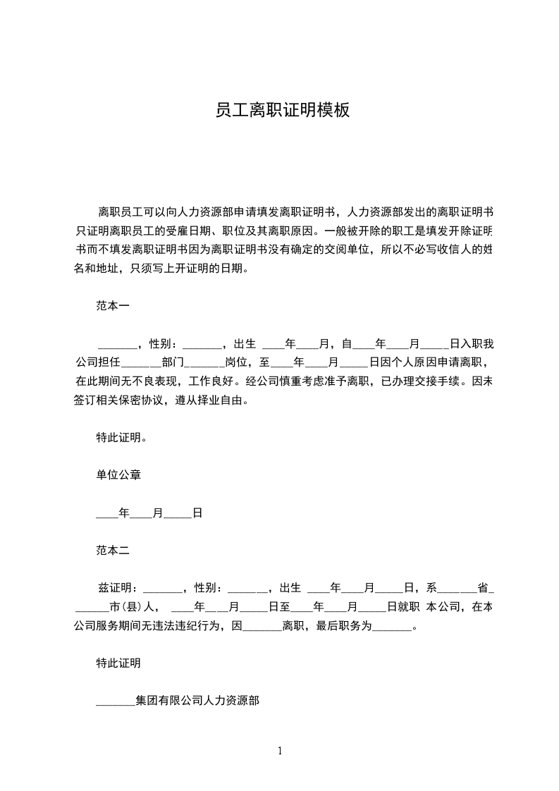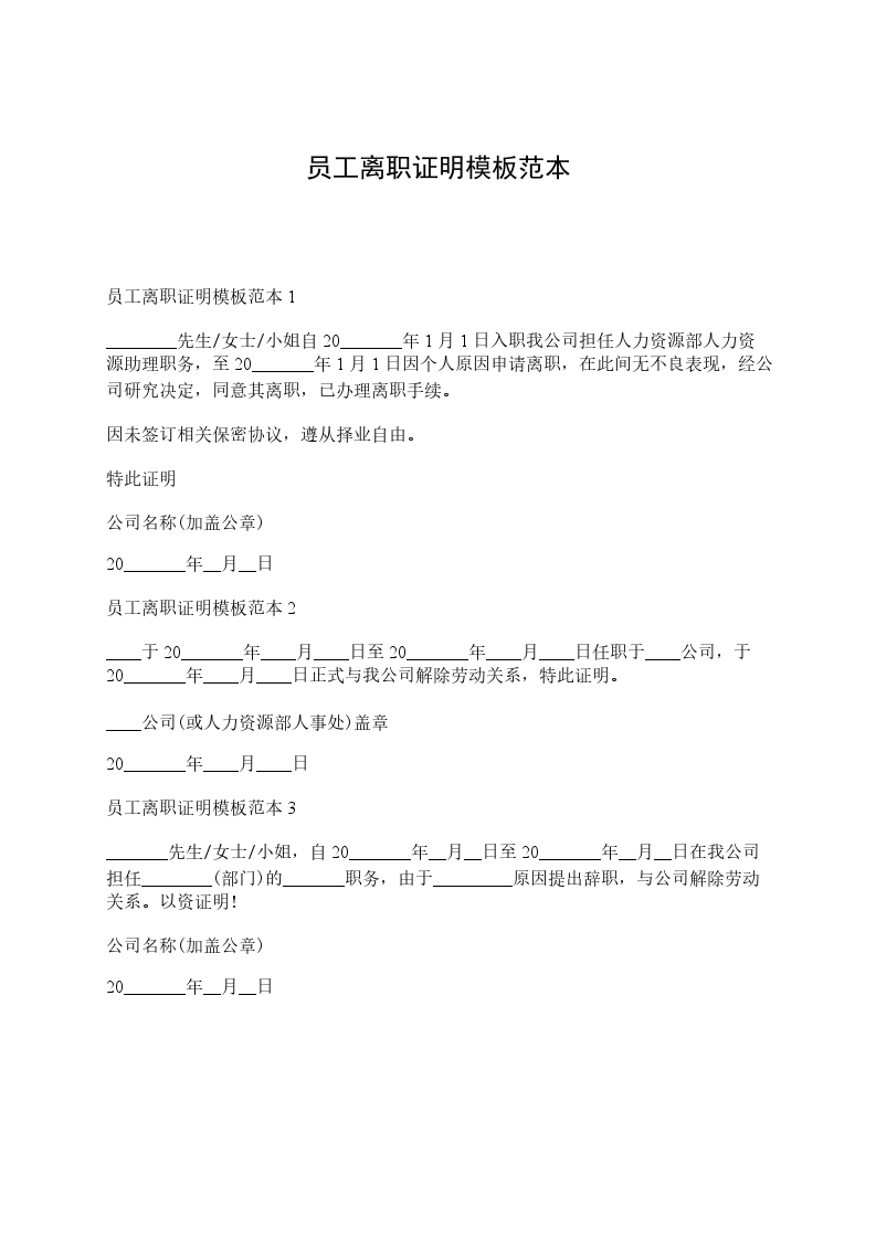兹证明:_______,性别:_______,出生 ____年____月_____日,系_______省_______市(县)人, ____年____月_____日至____年____月_____日就职 本公司,在本公司服务期间无违法违纪行为,因_______离职,最后职务为_______。