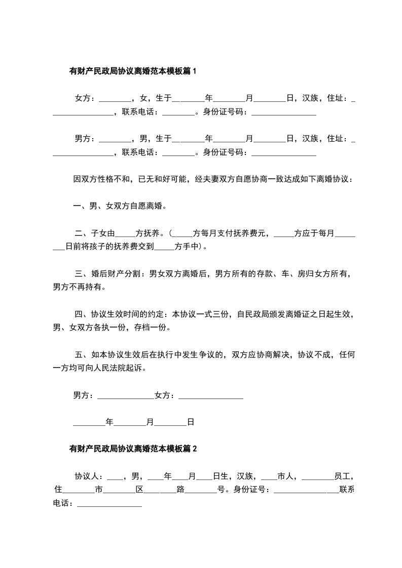 有房产民政局协议离婚书如何写篇11