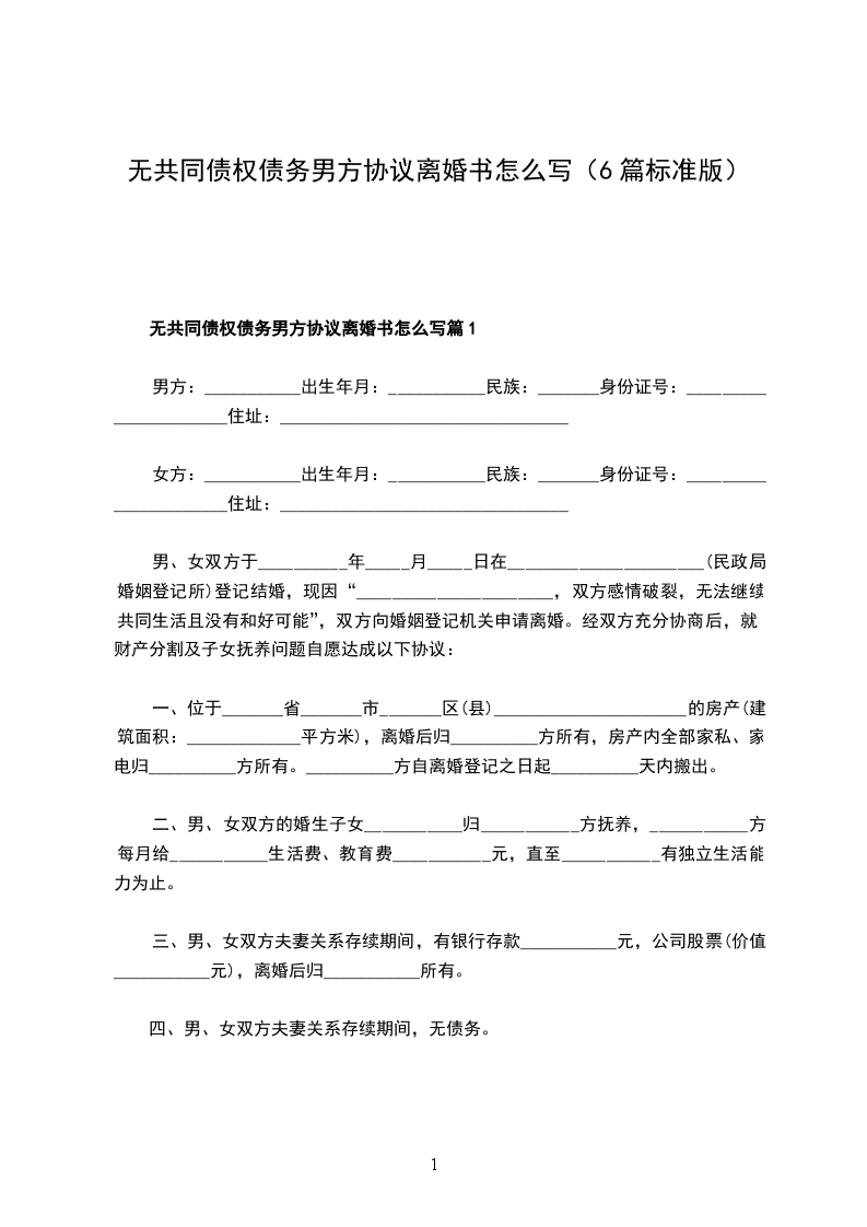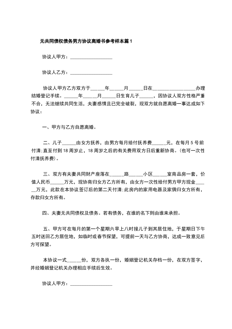 1、甲乙双方确认在婚姻关系存续期间无发生的共同债务。