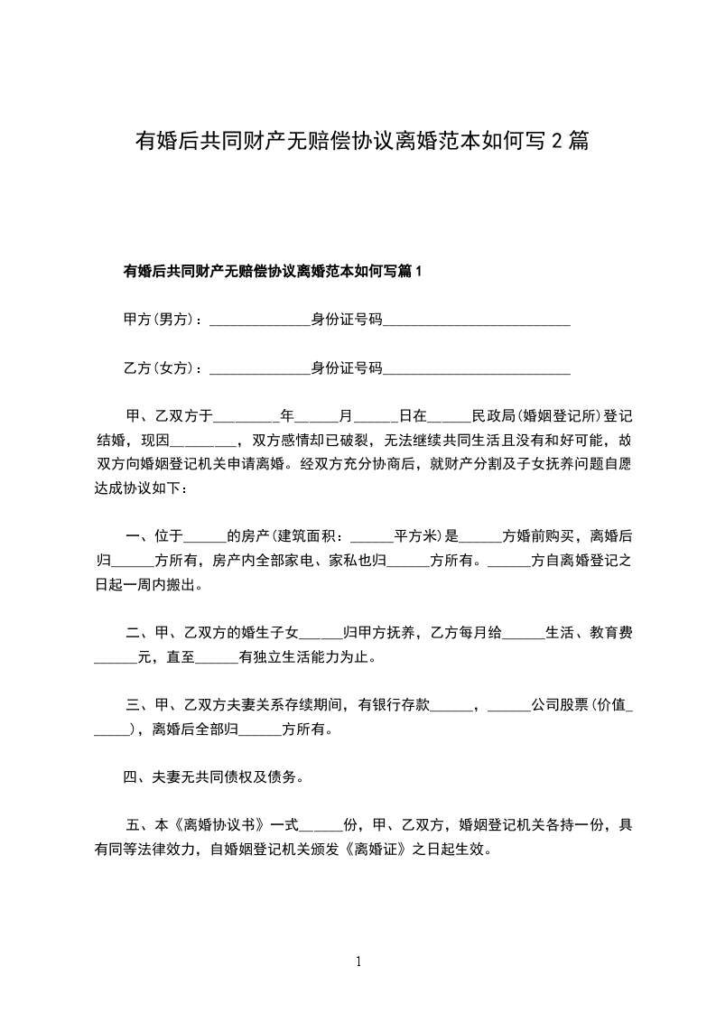 有婚后共同财产无赔偿协议离婚范本如何写篇2