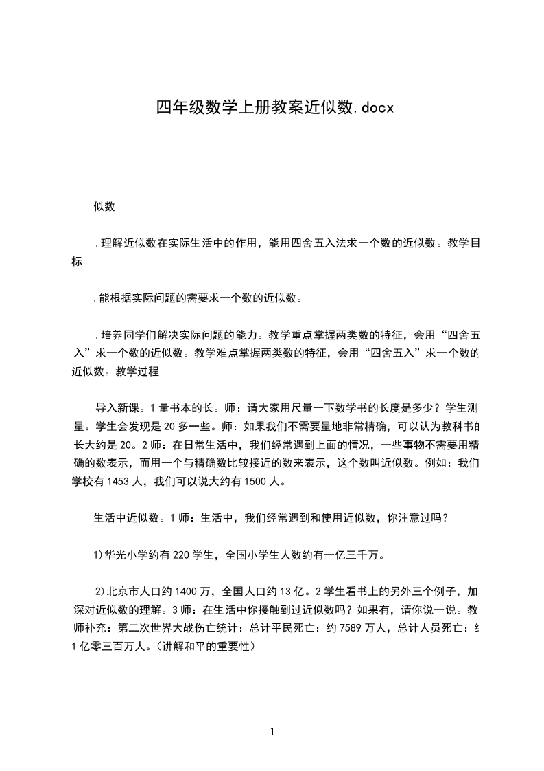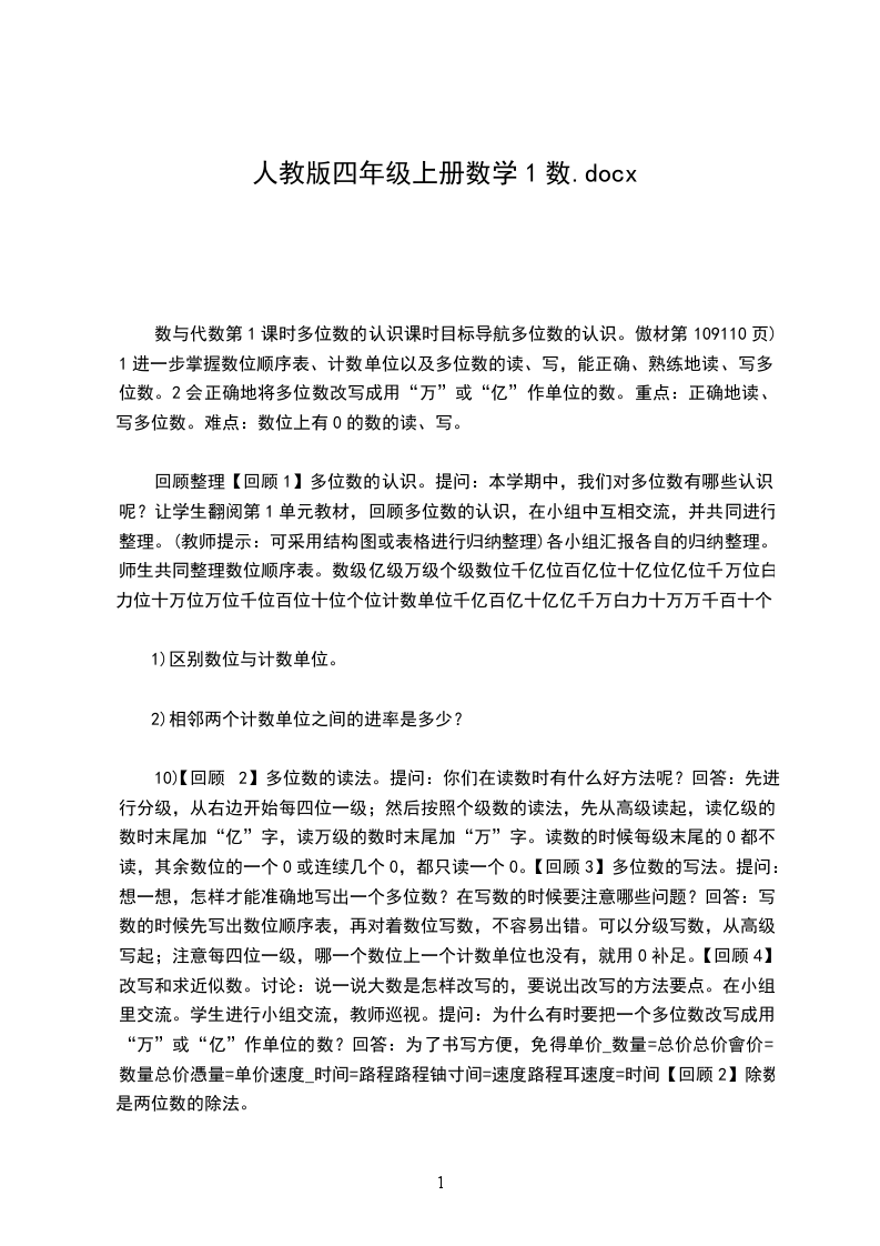 1.亿以内数的读法及写法,培养学生的数感。