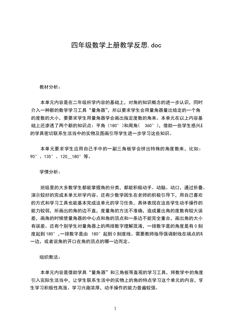 这一册教材安排了角的度量、平行四边形和梯形两个单元,这些都是本册的重点教学内容。