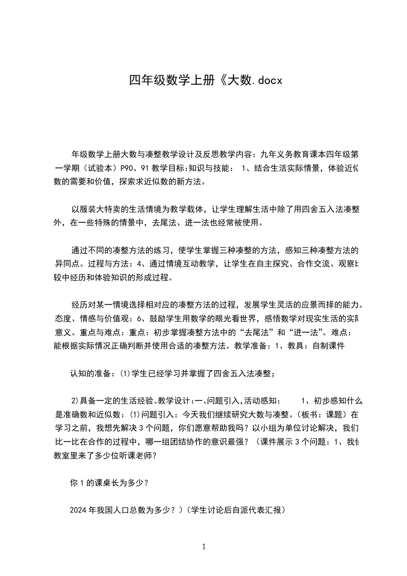 1、大数认识的教学突出数学味,联系生活素材,培养学生的数感;计算教学注重培养学生灵活的计算能力,发展学生的数感。