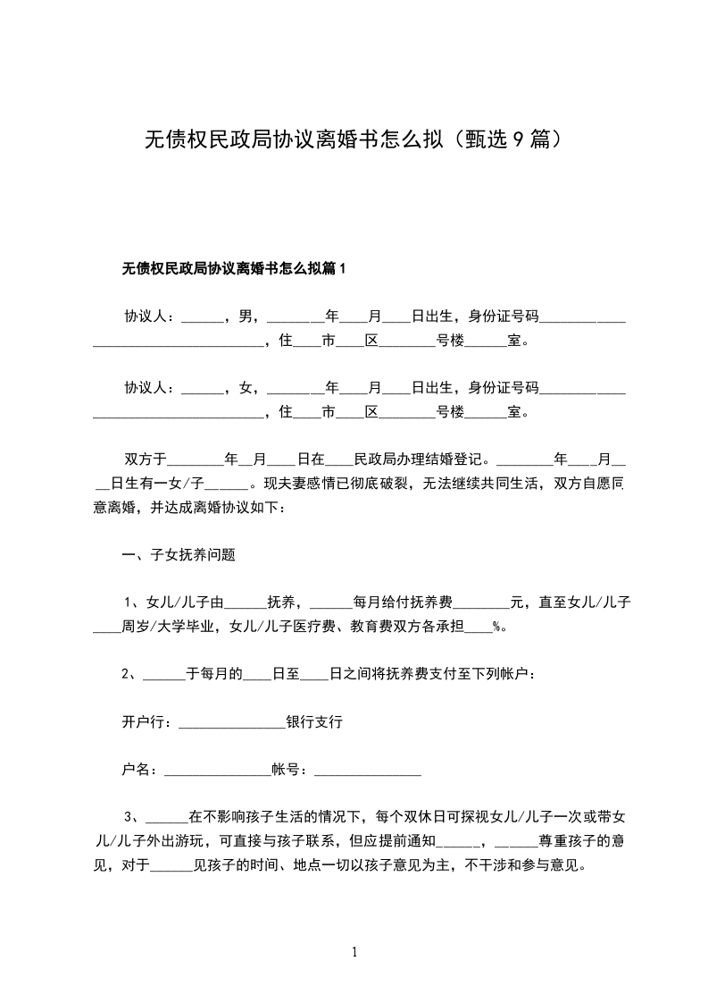 九、本协议一式三份,自婚姻登记处颁发离婚证之日起生效,男、女双方各执一份,婚姻登记机关存档一份。
