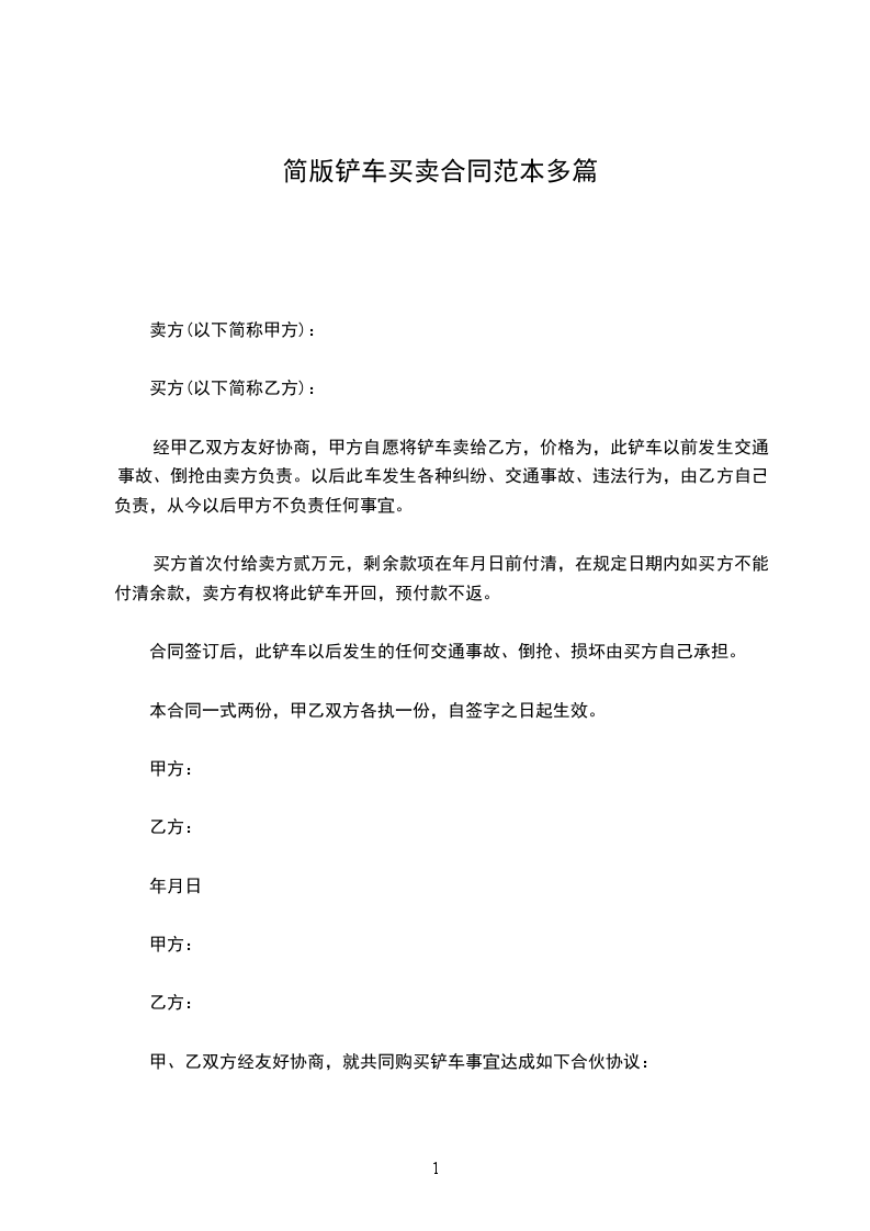 经甲乙双方友好协商,甲方自愿将铲车卖给乙方,价格为,此铲车以前发生交通事故、倒抢由卖方负责。以后此车发生各种纠纷、交通事故、违法行为,由乙方自己负责,从今以后甲方不负责任何事宜。