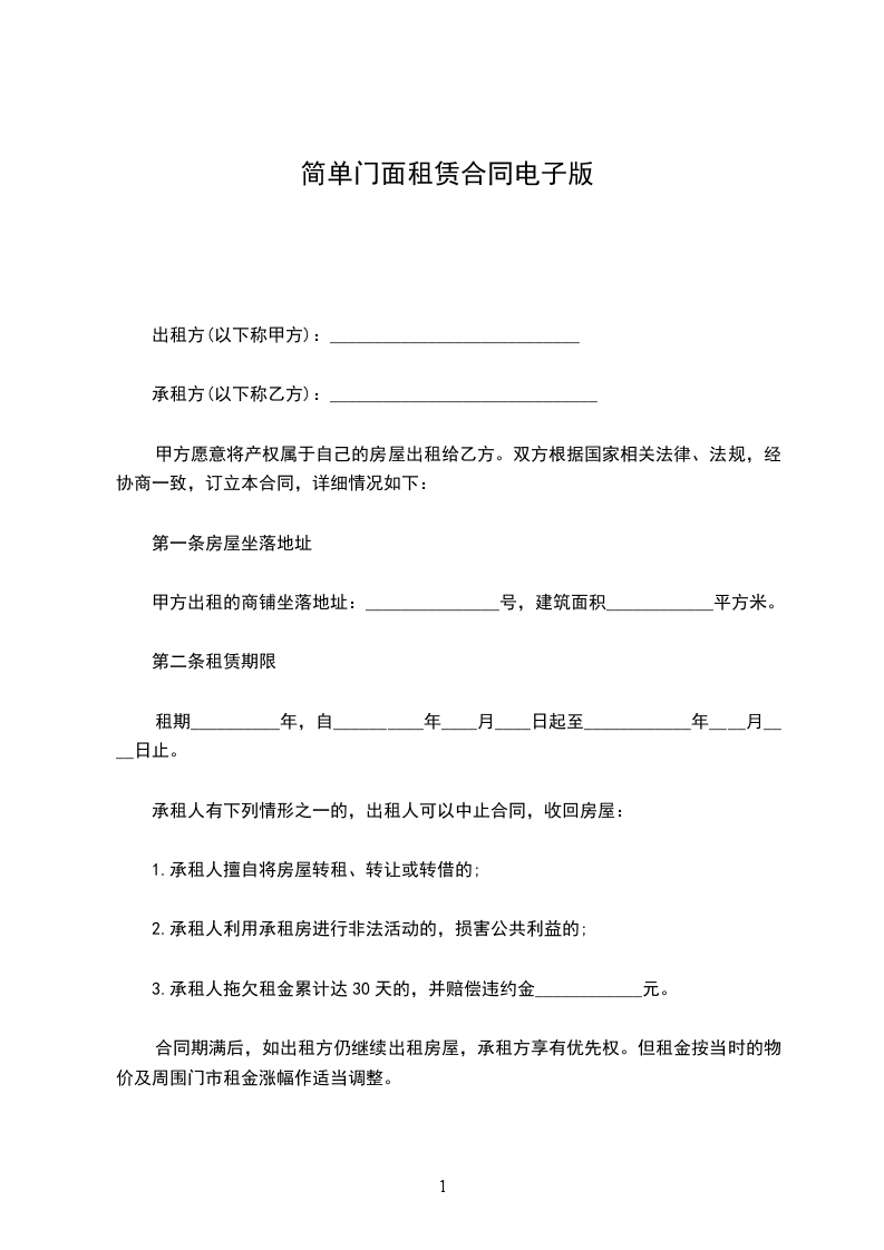 甲方出租的商铺坐落地址:_______________号,建筑面积____________平方米。