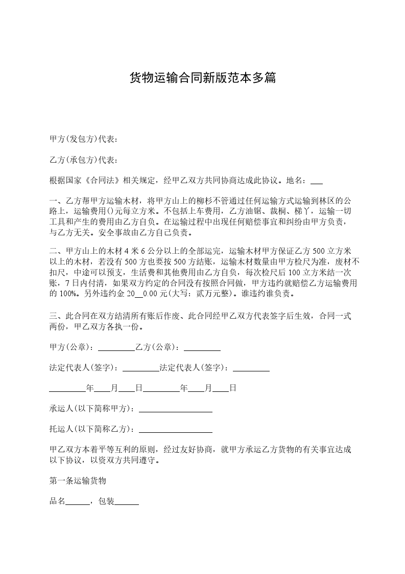 1、甲方调派________吨汽车一辆,应乙方要求将货物由(起运地)____________________至(到达地__________________________________________________________________。