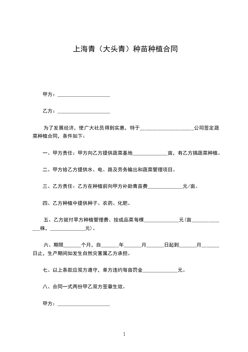 五、乙方就付早方种植管理费、按成品菜每棵______________元(亩______________株,______________元)。