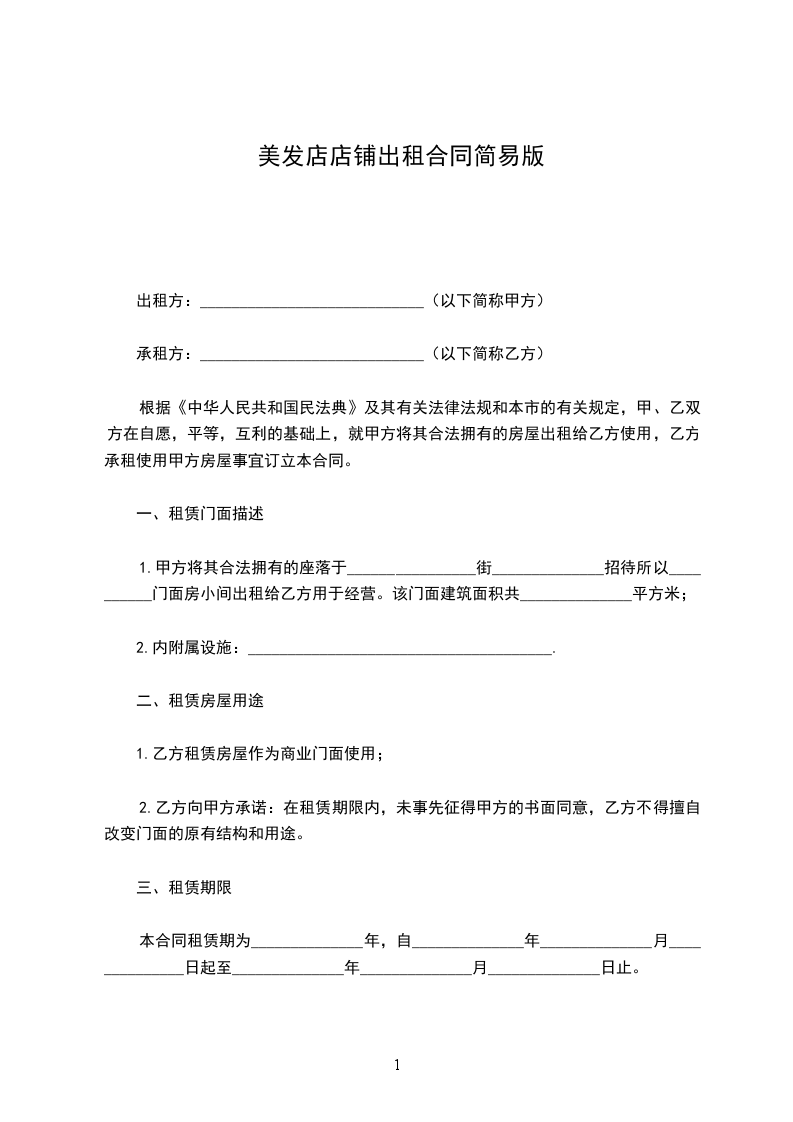 1.甲方将其合法拥有的座落于________________街______________招待所以__________门面房小间出租给乙方用于经营。该门面建筑面积共______________平方米;