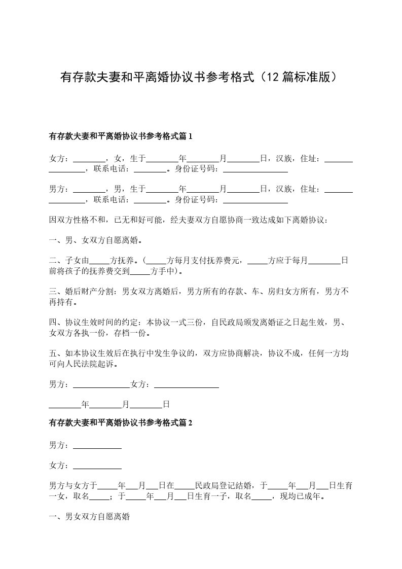 有存款夫妻和平协议离婚范本怎么拟篇12
