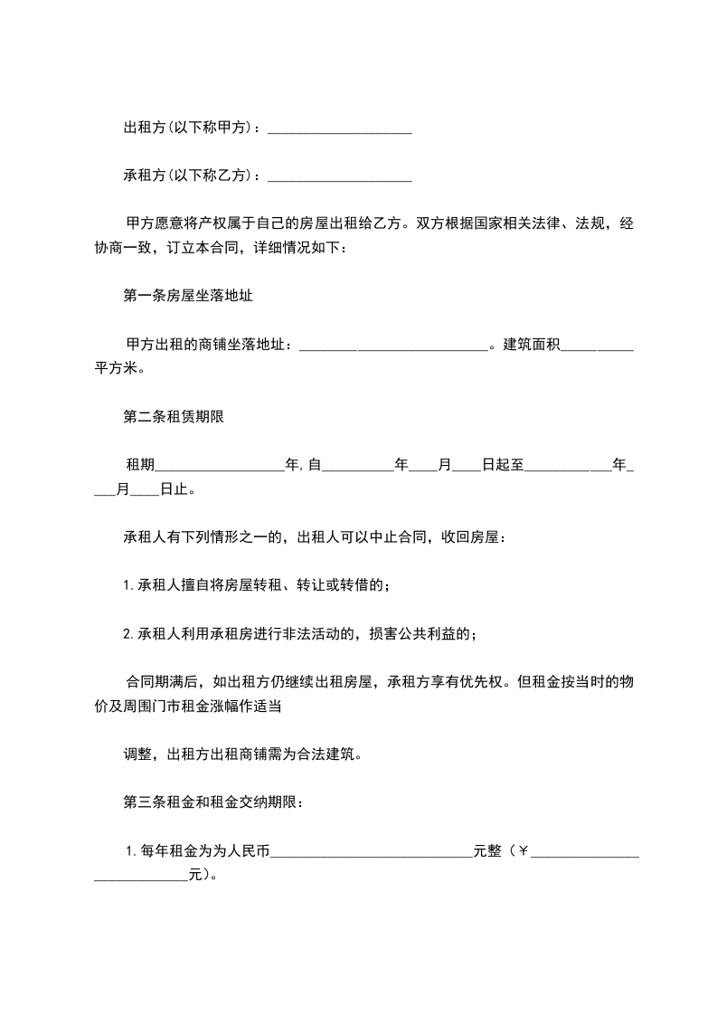 甲方出租的商铺坐落地址:__________________________。建筑面积__________平方米。