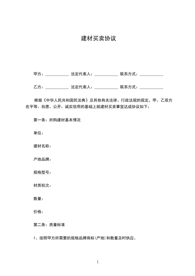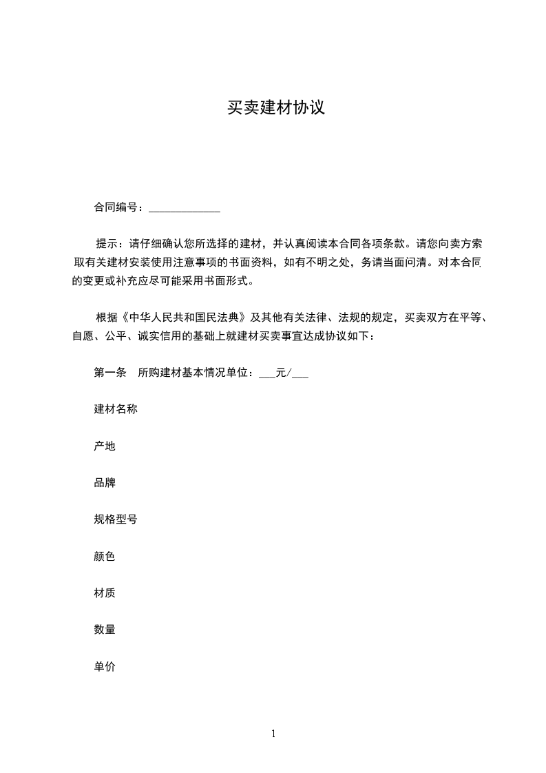 依据《中华人民共和国民法典》、《中华人民共和国建筑法》及相关法律法规,本着互惠互利、合作共赢的原则,经甲乙双方友好协商,现就供方购买需方______________事宜达成如协议: