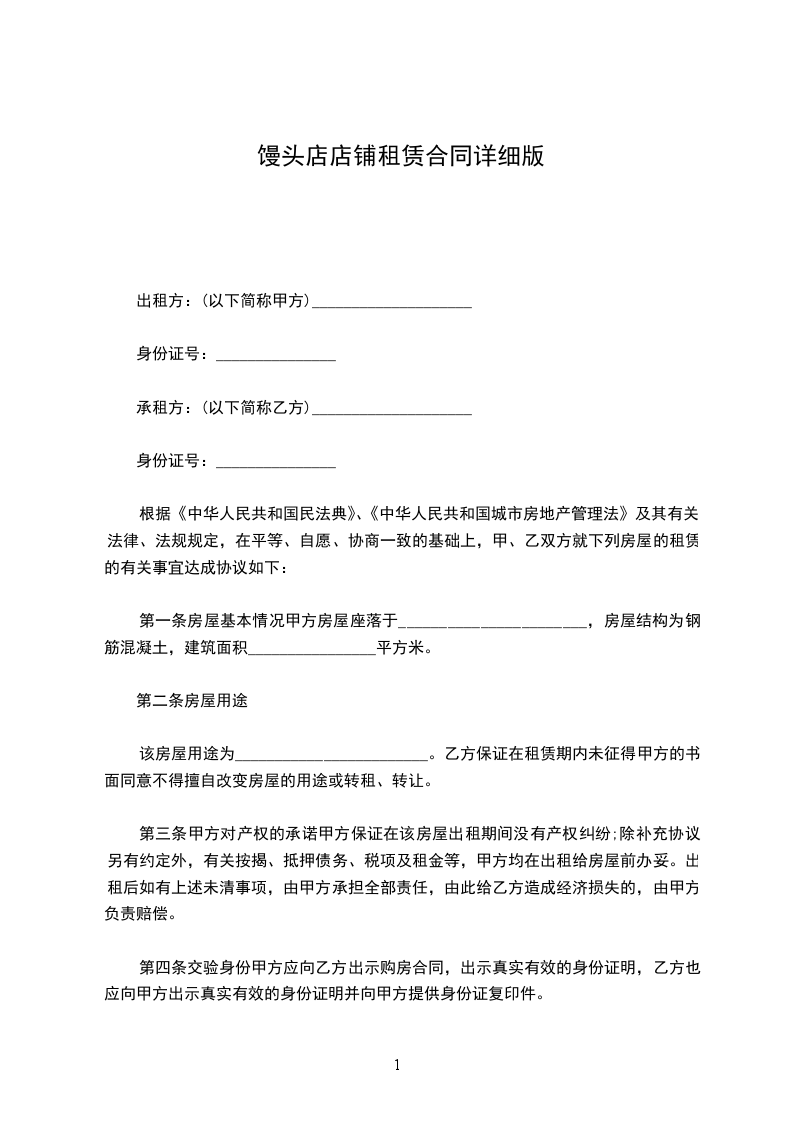 馒头店店铺租赁合同详细版