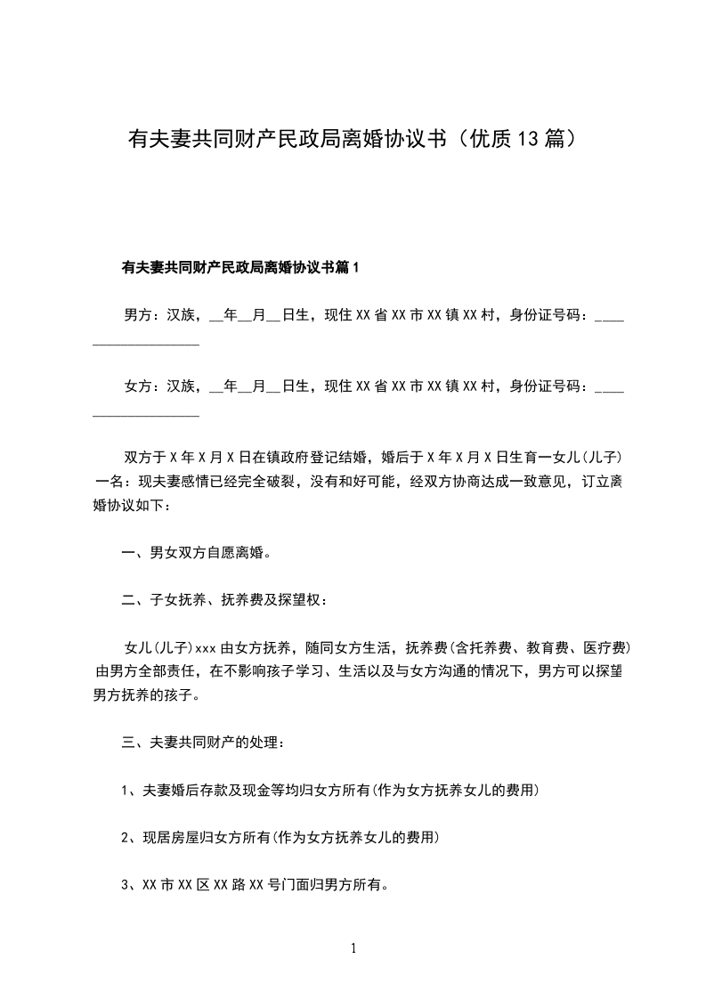 1. 第一房产位于XXXXX,现协商归女方所有;第二房产XXX,现协商归男方所有;