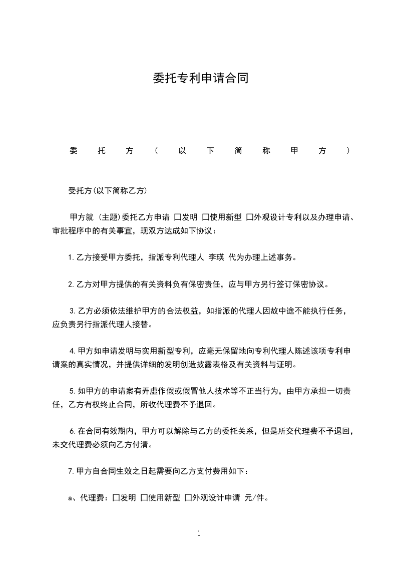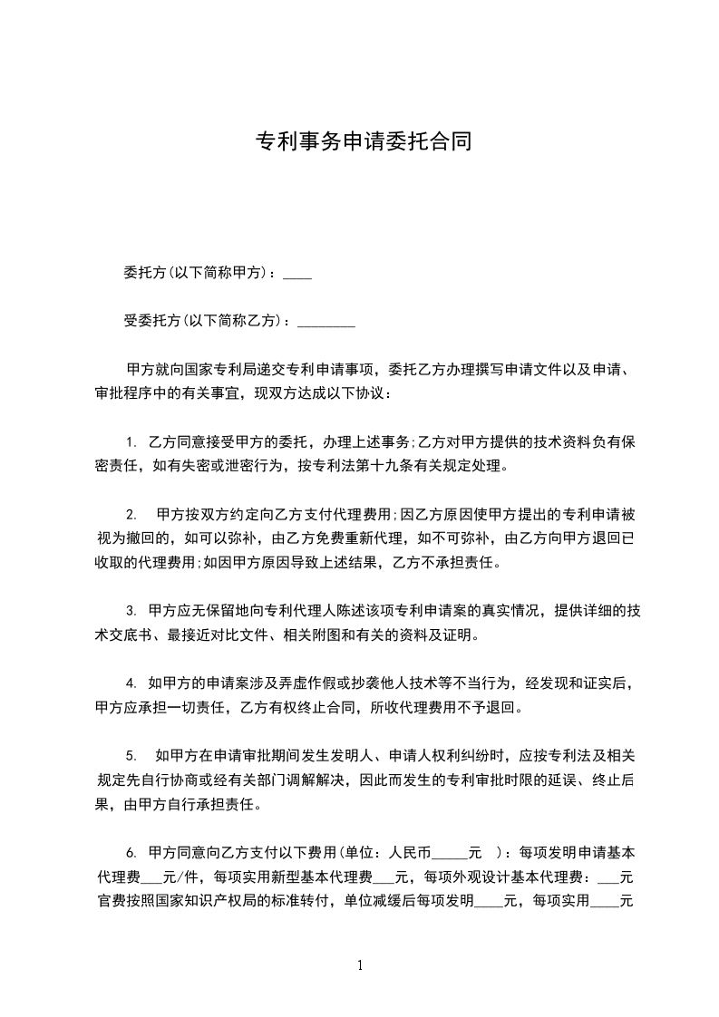 专利申请委托协议书