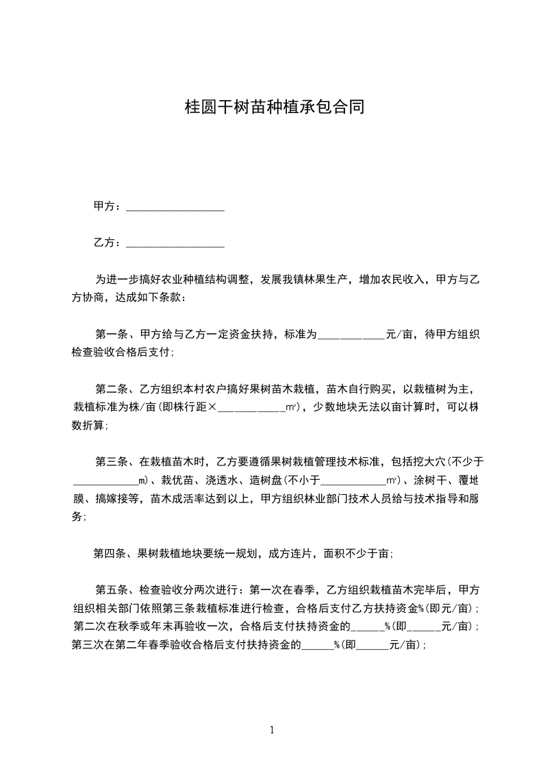 桂圆干种苗承包种植合同
