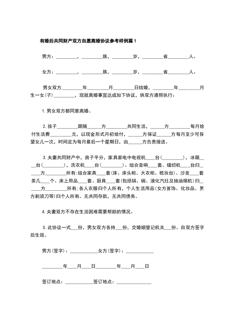 本协议书系双方真实意思表示,上述内容全部真实有效,一旦提供虚假情况,双方当事人自愿承担一切法律后果。本协议书一式____份,婚姻登记机关存档____份,双方各执____份,双方签字,并经婚姻登记机关办理离婚登记后生效。