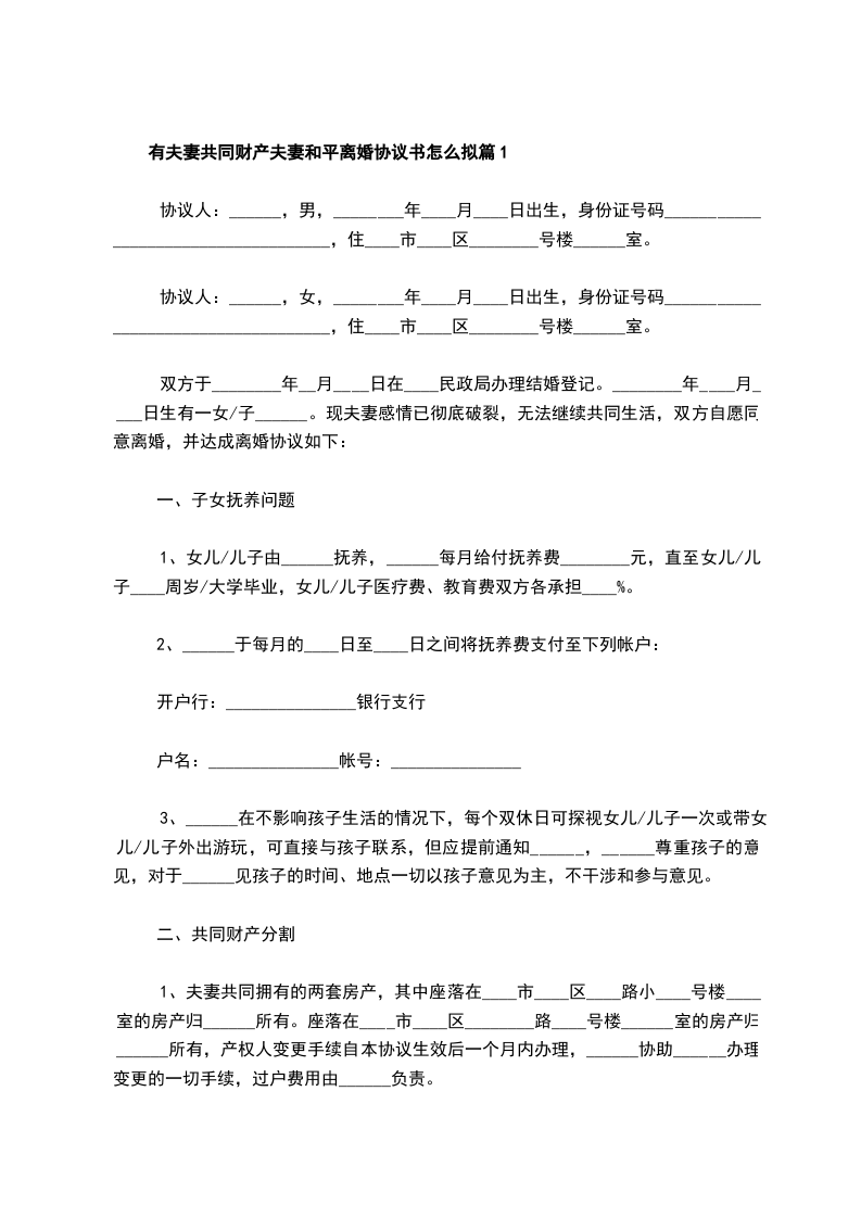 2024年夫妻和平离婚协议怎么拟篇2