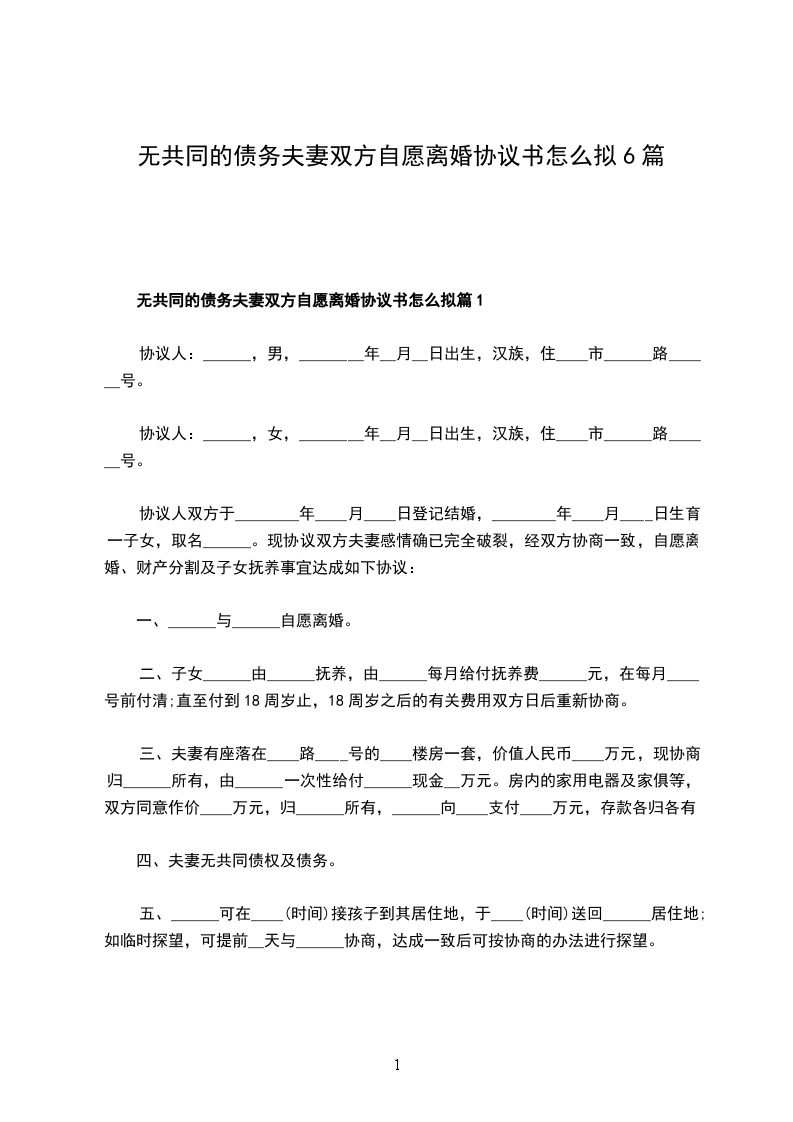 无共同的债务夫妻双方自愿离婚协议书怎么拟篇6