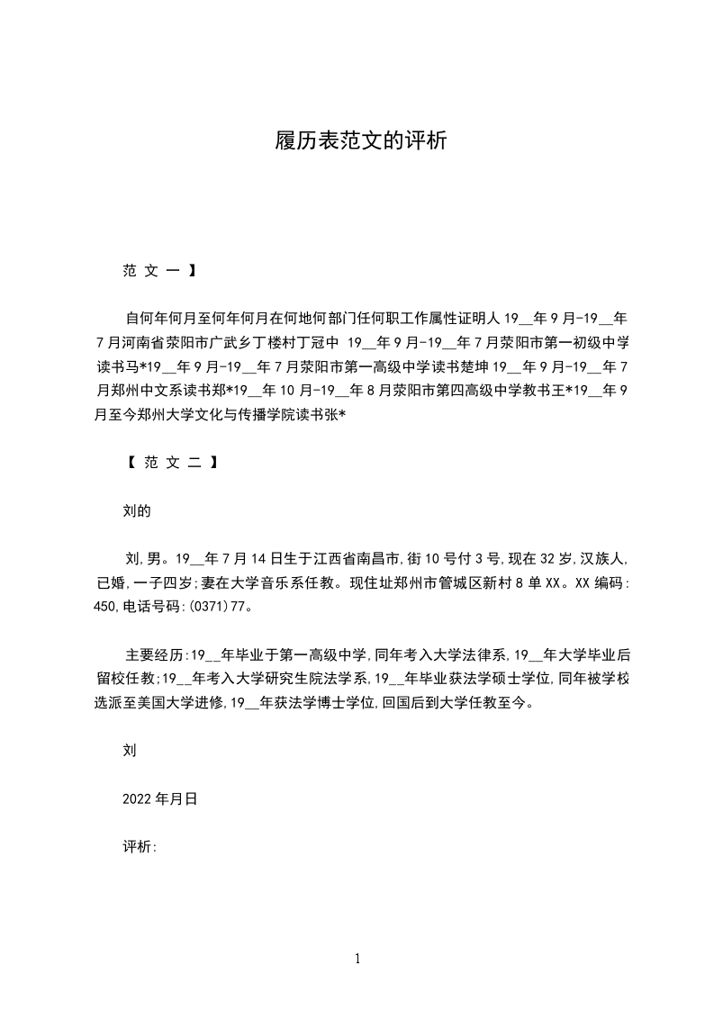 主要经历:19__年毕业于第一高级中学,同年考入大学法律系,19__年大学毕业后留校任教;19__年考入大学研究生院法学系,19__年毕业获法学硕士学位,同年被学校选派至美国大学进修,19__年获法学博士学位,回国后到大学任教至今。