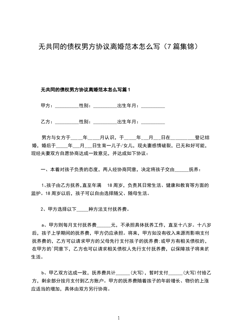 无共同债权债务男方离婚协议书样本篇7
