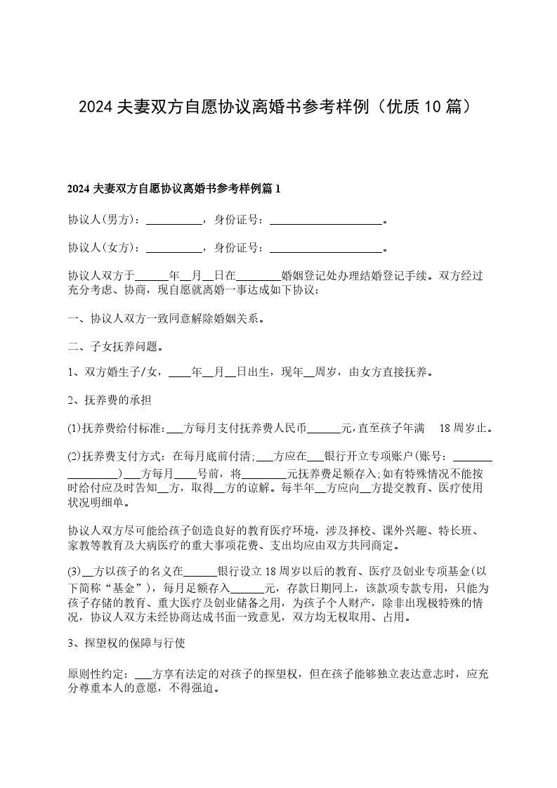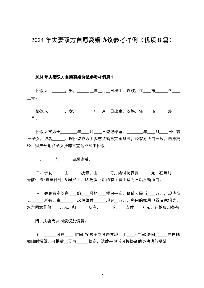 2024夫妻双方自愿离婚协议参考样例篇1