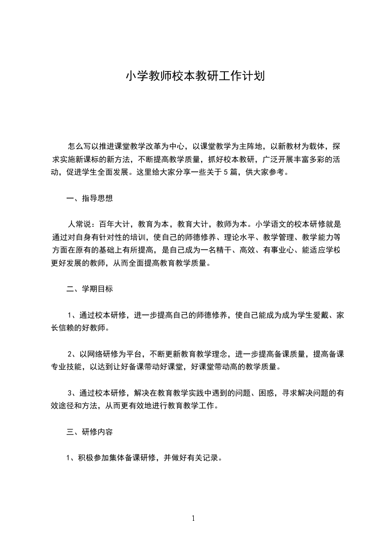 1、通过校本研修,进一步提高自己的师德修养,使自己能成为成为学生爱戴、家长信赖的好教师。