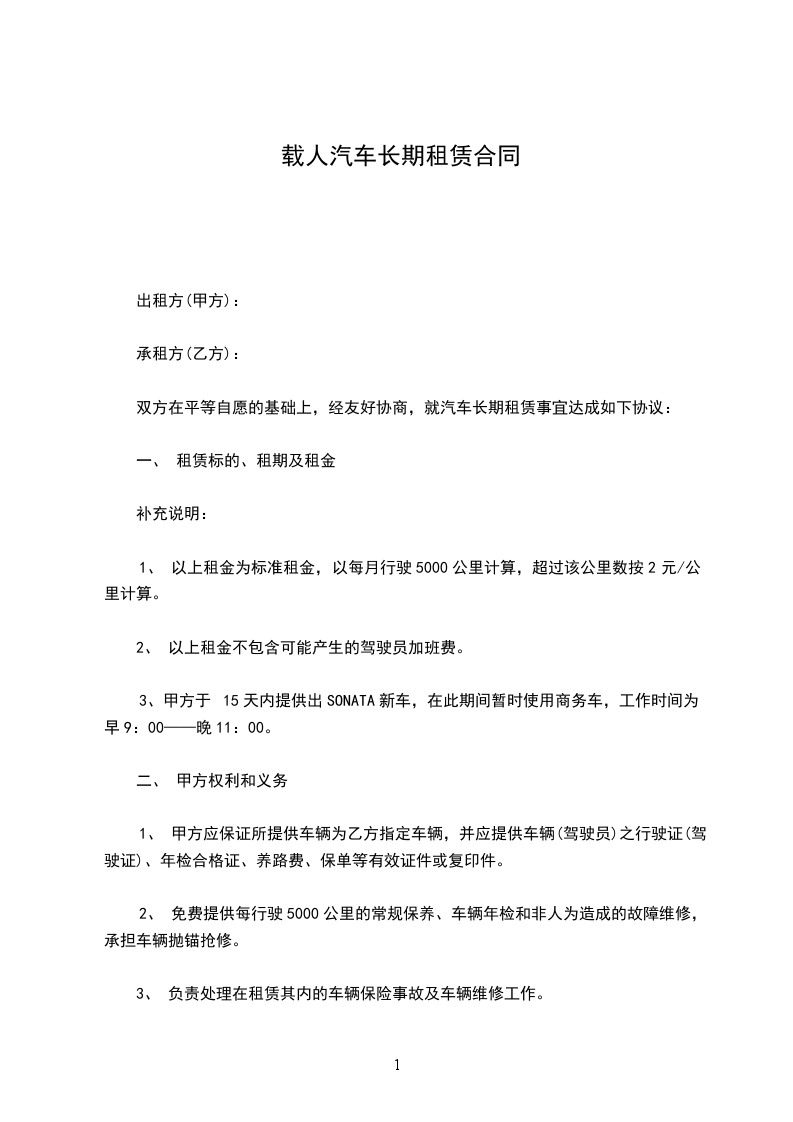双方在平等自愿的基础上,经友好协商,就汽车长期租赁事宜达成如下协议: