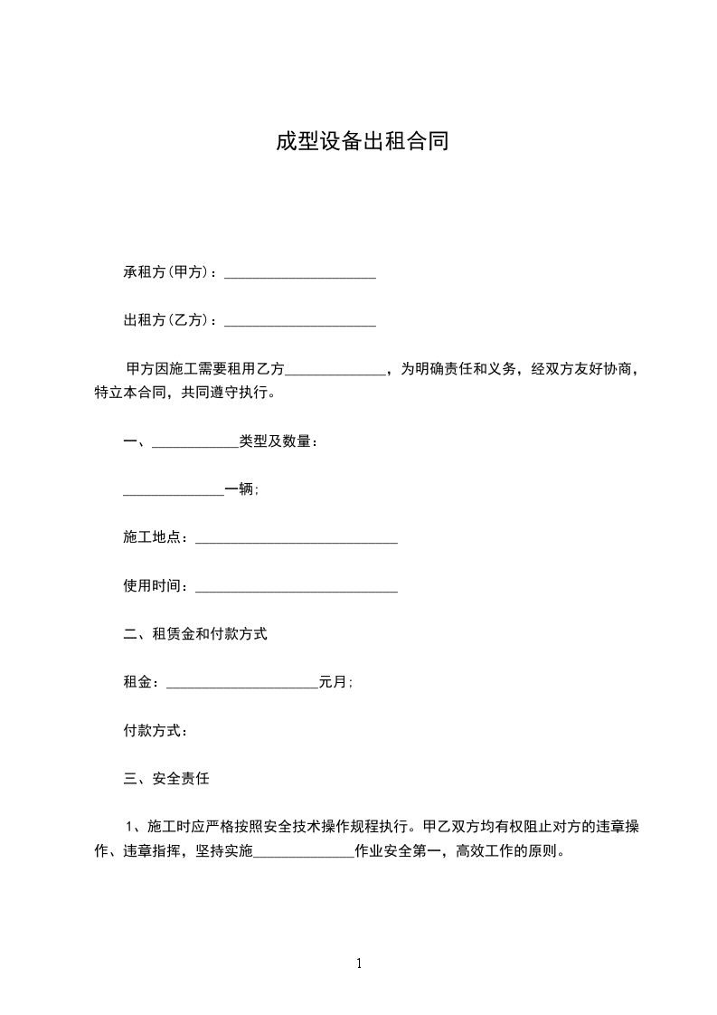 甲方因施工需要租用乙方______________,为明确责任和义务,经双方友好协商,特立本合同,共同遵守执行。