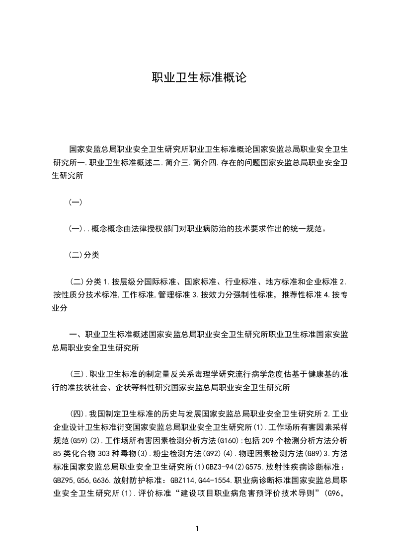 一、职业卫生标准概述国家安监总局职业安全卫生研究所职业卫生标准国家安监总局职业安全卫生研究所