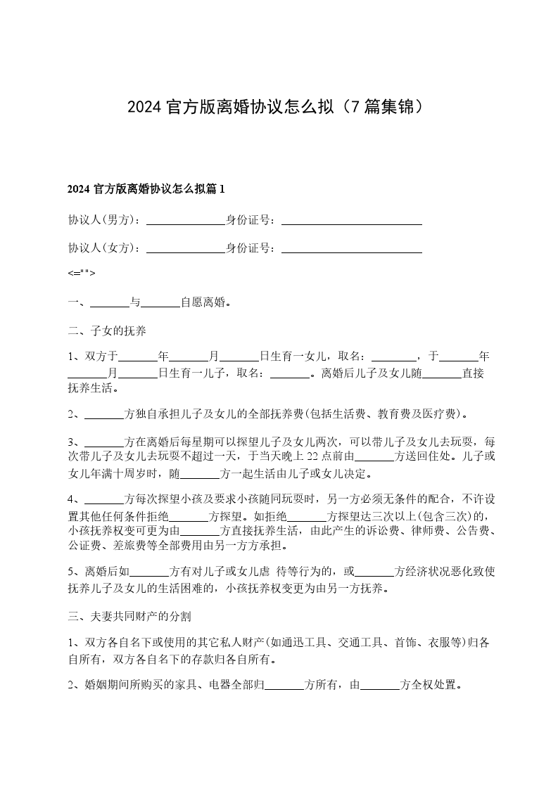 本协议书系双方真实意思表示,上述内容全部真实有效,一旦提供虚假情况,双方当事人自愿承担一切法律后果。本协议书一式____份,婚姻登记机关存档____份,双方各执____份,双方签字,并经婚姻登记机关办理离婚登记后生效。