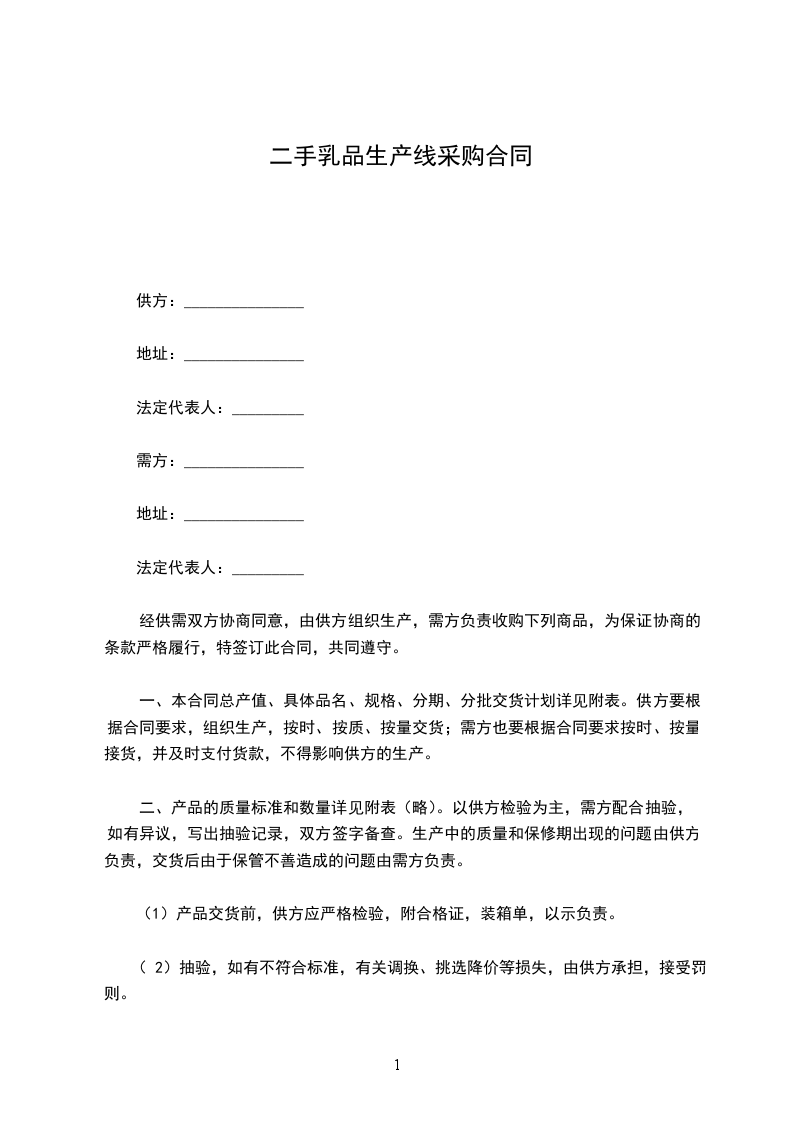 (1)供方无故延期交货或提供产品的品种、规格、质量不符合同规定,由此造成延误交货时间,每天应付需方延期货款总值_________%的违约金(可由双方约定)。