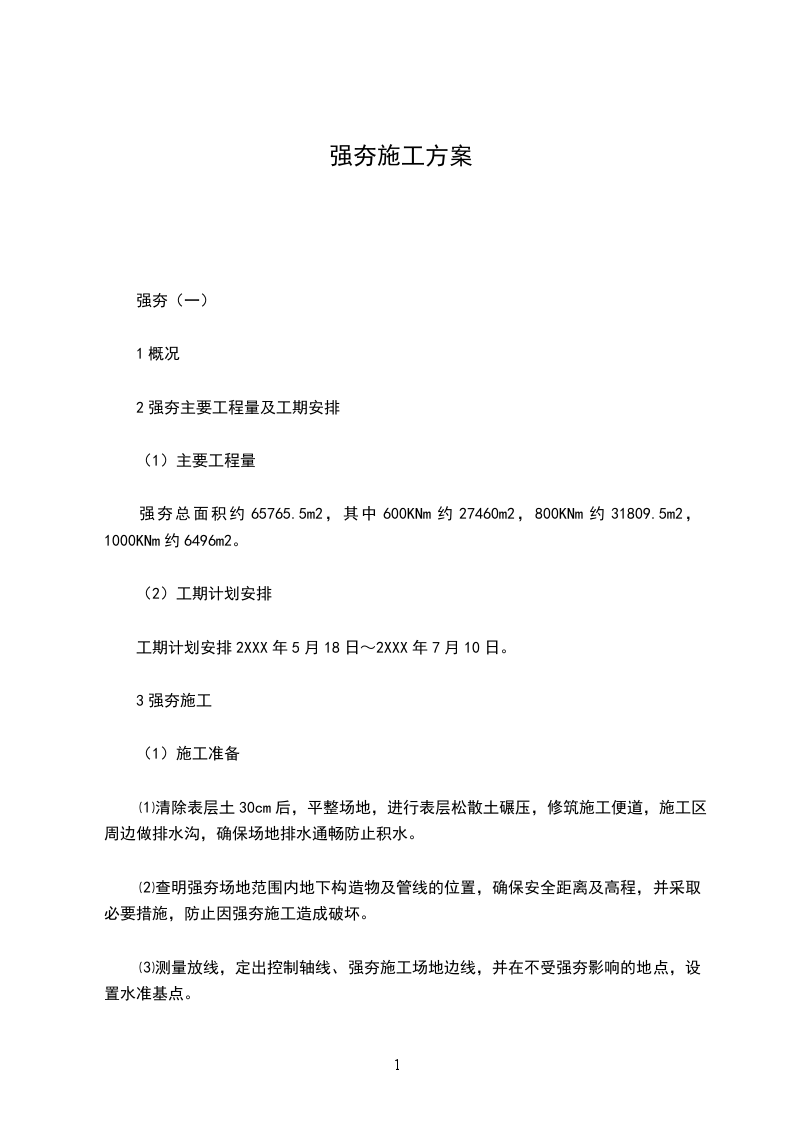 强夯总面积约65765.5m2,其中600KNm约27460m2,800KNm约31809.5m2,1000KNm约6496m2。