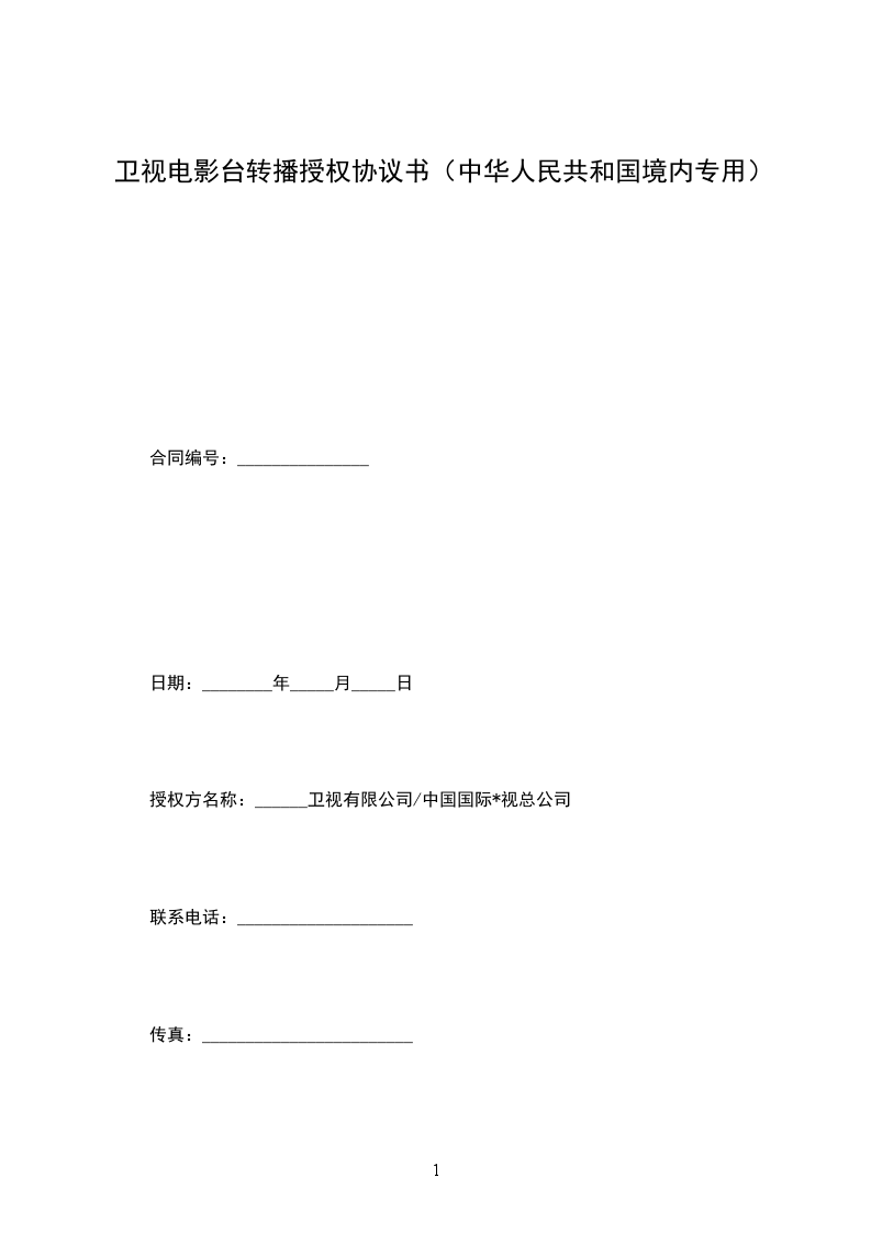 2.授权方保留未言明授予被授权方的有关__________卫视电影台频道的一切权利。被授权方不得录制,复制和传播__________卫视电影台频道节目,用于本合同以外的目的。