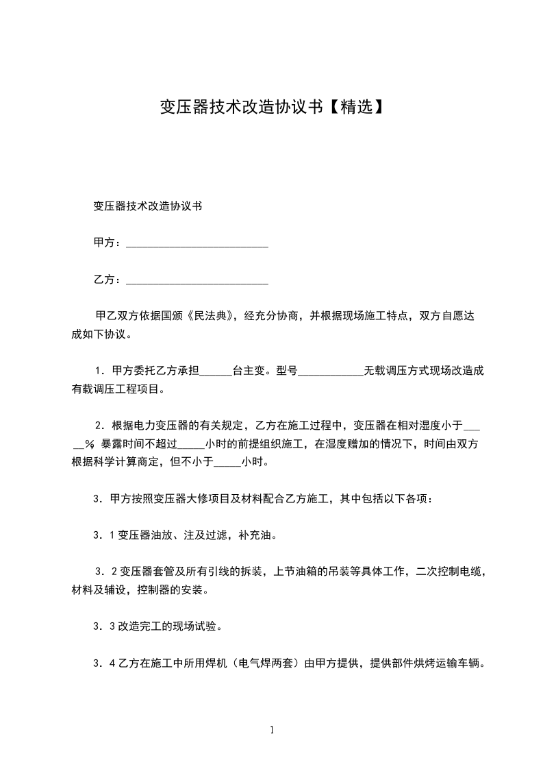 1.甲方委托乙方承担______台主变。型号____________无载调压方式现场改造成有载调压工程项目。