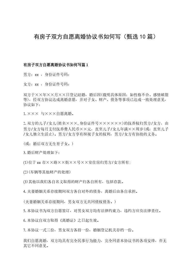 有房子双方自愿协议离婚范本格式篇10