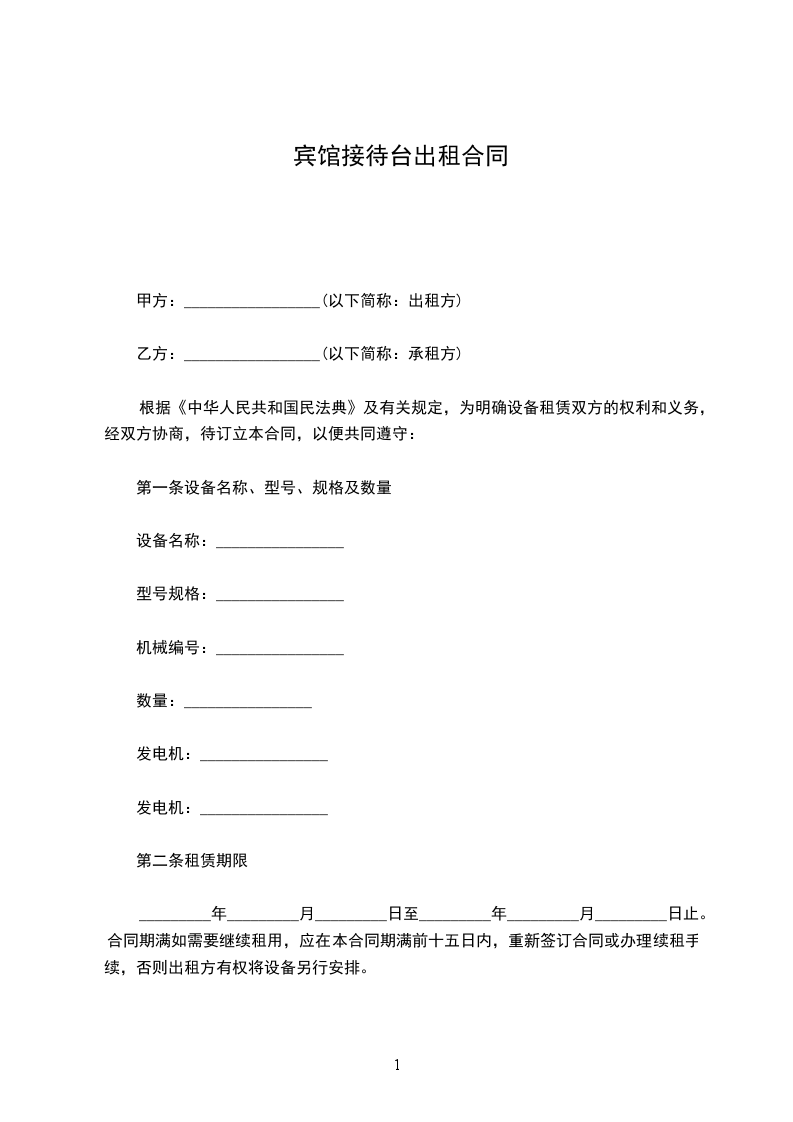 根据《中华人民共和国民法典》及有关规定,为明确设备租赁双方的权利和义务,经双方协商,待订立本合同,以便共同遵守: