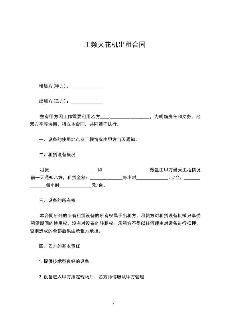 兹有甲方因工作需要租用乙方_____________________,为明确责任和义务,经双方平等协商,特立本合同,共同遵守执行。
