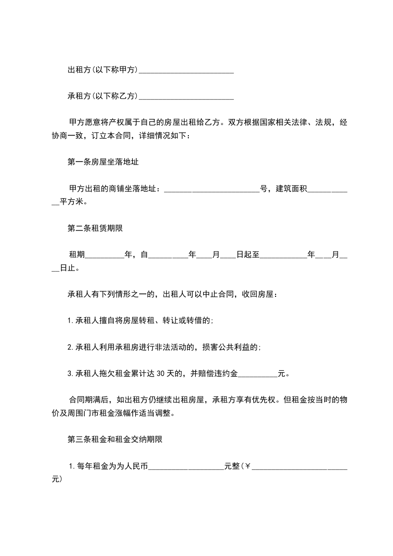 第三条租金和租金交纳期限: