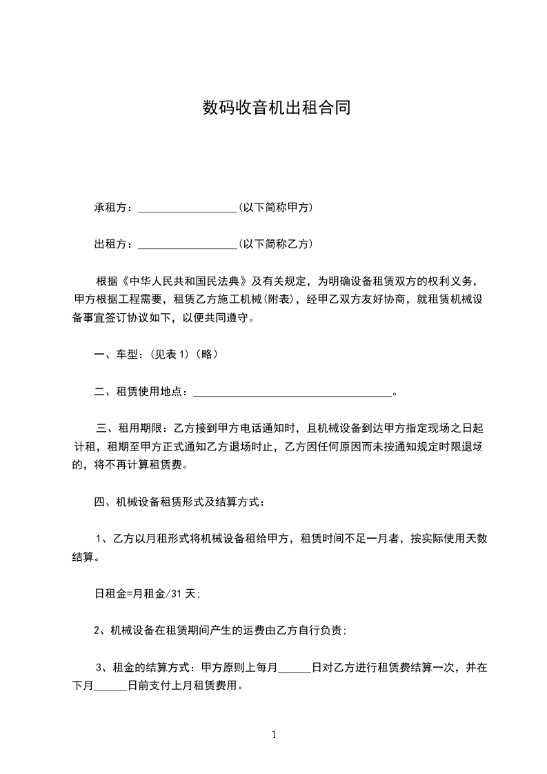 根据《中华人民共和国民法典》及有关规定,为明确设备租赁双方的权利义务,甲方根据工程需要,租赁乙方施工机械(附表),经甲乙双方友好协商,就租赁机械设备事宜签订协议如下,以便共同遵守。