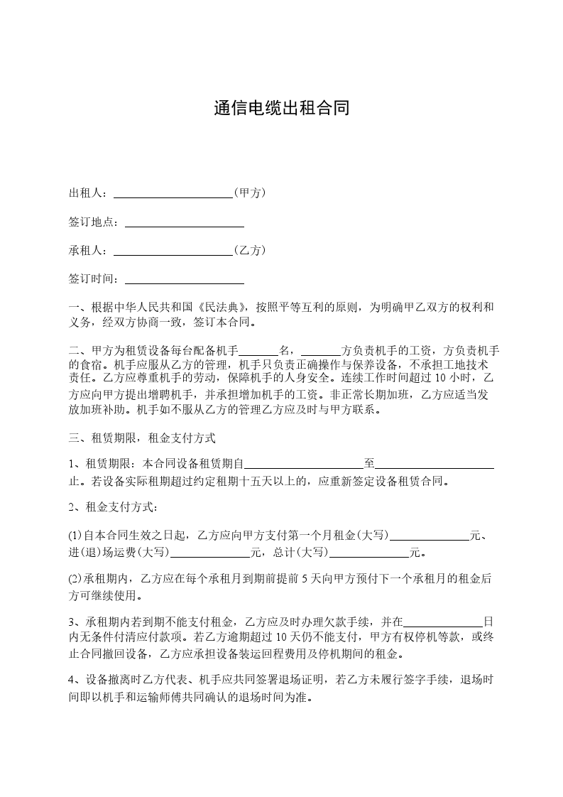 根据《中华人民共和国民法典》及有关规定,为明确设备租赁双方的权利义务,甲方根据工程需要,租赁乙方施工机械(附表),经甲乙双方友好协商,就租赁机械设备事宜签订协议如下,以便共同遵守。